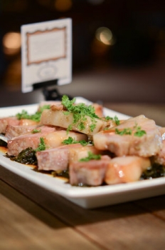 Put the pork loins inside of the hog cavity and close it up with the belly facing upward, tying the pig together with slip knots from the middle out. After the ties are all in place (about 1-inch apart), start cinching the knots together until the pig is an even shape. Truss the pig by tying off on his nose and fishing the twine through the knots, finishing at the back end (4 total: top, bottom, left, and right). Leave overnight to marinade. The next day, smoke for 8 hours at 200°F in an outdoor trailer smoker.